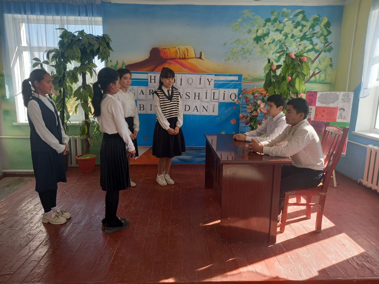 Qaraòzek rayonı mektepke shekemgi hàm mektep bilimlendiriw bòlimine qaraslı 5-sanlı ulıwma orta bilim beriw mektebinde 13-19-noyabr «Keñpewillik hàpteligi» mùnasebeti menen «Milliy ùrip-àdetler» atamasında saxnalıq kòrinis shòlkemlestirildi