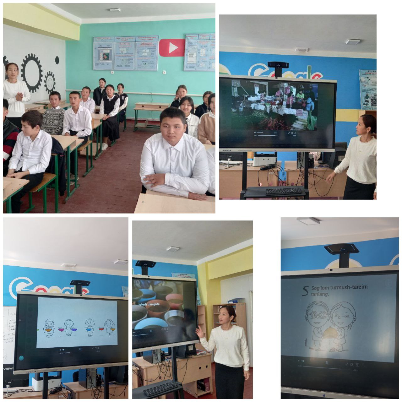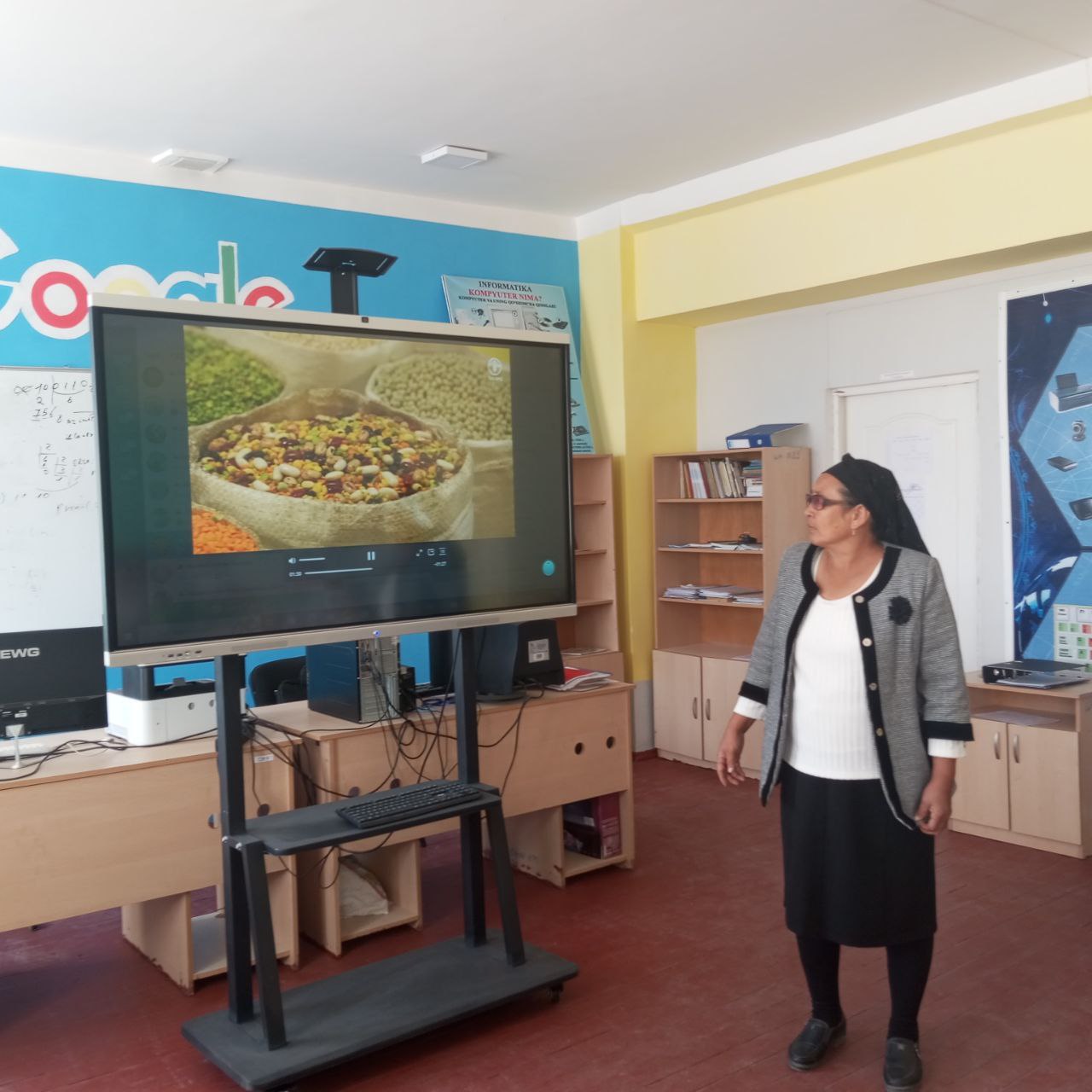 Qaraòzek rayonì MSh hàm MB bòlimine qaraslì 5-sanlì UOBB mektebiniñ geografiya pàni oqìtìwshìsì Eshbanova Gùlchexranìñ 7-b,8-klasqa 15-oktyabr «Pùtkil jàhàn azìq-awqat kùni» mùnàsibetine òtken ashìq sabaqtan kòrinisleri.